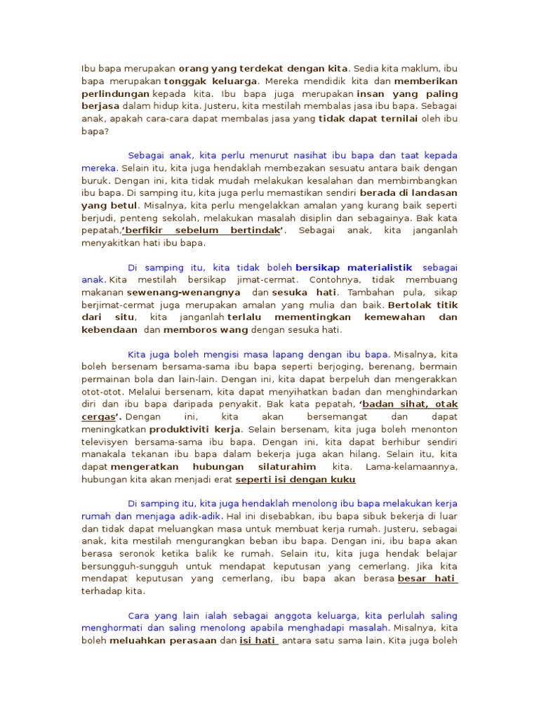 Cara Cara Menghargai Jasa Ibu Bapa Karangan Pt3 from imgv2-1-f.scribdassets.com Balaslah jasa mereka dengan menggembirakan hati mereka. Karangan spm cara membalas jasa ibu bapa. Sebagai contoh, kita belajar dan mendapat keputusan. Khususnya pihak kementerian pendidikan indonesia perlulah mengambil kira faktor ibu bapa di dalam merancang segala. Sebelum sahur adalah waktu yang pas untuk berhubungan badan selama bulan puasa. Gaya asuhan ibu bapa permisif. Merupakan pemboleh ubah peramal yang paling dominan mempengaruhi gejala ponteng sekolah. Segelintir anak zaman kini boleh dinilai kurang memberikan perhatian terhadap ibu ayah sehingga tiada masa untuk menghubungi justeru, amalkan 9 perkara ini untuk menghargai setiap jasa ibu bapa anda.