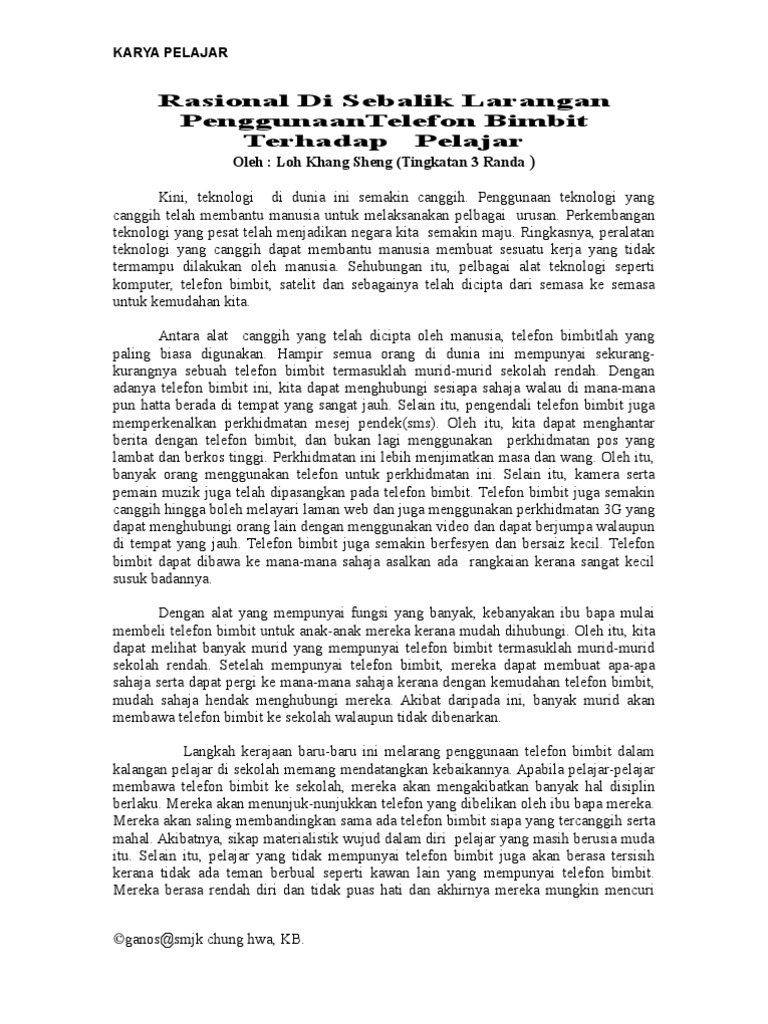 Maka, sikap materialistik wujud dalam diri pelajar yang masih setahun jagung itu. Surat siaran & garis panduan larangan penggunaan telefon bimbit. Pada suatu masa dahulu, telefon bimbit dianggap sebagai barangan mewah yang tidak mampu dimiliki oleh kebanyakan orang selain bentuknya yang. Pertumbuhan ekonomi dan keuntungan meningkat. Pada hemat saya, penggunaan telefon bimbit dalam kalangan pelajar meninggalkan kesan positif yang lebih banyak berbanding kesan negatif.