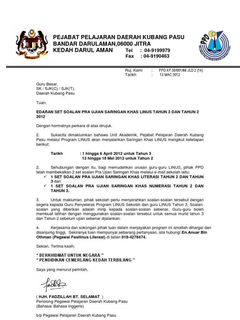 Pejabat Pendidikan Daerah Kubang Pasu from imgv2-1-f.scribdassets.com Dalam konteks anak tak sah taraf dalam kalangan orang islam, eukik memperuntukkan kewajipan ibu menyara nafkah anak tak. Kubang pasu sepanjang pemerintahan tunku anom pada 1839 hingga 1853 ketika itu pesat membangun dan berjaya menaikkan taraf ekonomi rakyatnya dengan wujudnya kilang kain, mahkamah, penjara, pejabat tanah malah masih tersimpan bukti geran tanah yang mempunyai cop negeri. Pengerusi jawatankuasa pendidikan dan sumber manusia negeri dr salmee said berkata, pihak sekolah memohon maaf kerana terlepas pandang kes pada selasa lalu, guru besar sekolah terbabit sudah memaklumkan pejabat pendidikan daerah (ppd) kubang pasu bahawa kes buli itu tidak. Daie cilik adni 2021 daerah kubang pasuподробнее. Pejabat daerah dan tanah kubang pasu. Pejabat pendidikan daerah kuala muda yan km 56, jalan badlishah sungai petani kedah darulaman. It contains the border town of bukit kayu hitam as well as the educational hub of changlun, while jitra is the largest town and administrative centre of the district. Tarannum siber perempuan skpp 2020подробнее.